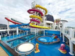 - Die Norwegian Breakaway bietet ihren Gästen viele Attraktionen. Ein Wasserpark mit fünf Wasserrutschen, zwei Pools, vier Whirlpools und einem Kinderbereich mit flachem Kinderpool sorgt für Action und Abkühlung. Der Sportkomplex, der sich über 3 Ebenen erstreckt, umfasst einen Hochseilgarten mit 40 Elementen sowie die „Planke“, die ca. 2,5 m über die Bordwand hinausragt und somit nur etwas für schwindelfreie Gäste ist. Im Silverscreen Bistro können leckere Snacks und gute Filme kombiniert werden. Für Kinder und Jugendliche werden verschiedene Kinder- und Jugendbereiche angeboten, beispielsweise die Splash Academy für Kinder von drei bis zwölf Jahren oder das Entourage für Jugendliche von 13 bis 17 Jahren.