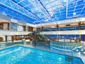 Das Schiff verfügt über verschiedene Pools, darunter ein Infinity-Pool mit atemberaubendem Meerblick. Für sportliche Aktivitäten stehen ein Fitnesscenter, ein Jogging-Track und verschiedene Sportplätze zur Verfügung. Auch für Kinder gibt es zahlreiche Aktivitäten, wie z.B. Spielbereiche, Kinderpools und ein Kinderclub.