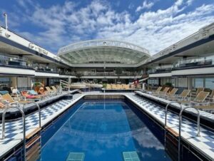 - Ein weiteres Highlight ist eine wahre Oase: Über zwei Decks erstreckt sich The Pavilion mit Glaskuppeldach, welches sich je nach Wetterlage öffnen oder schließen lässt. Gäste können hier ruhige Stunden am Pool verbringen, es sich auf Liegestühlen und anderen Sitzplätzen bequem machen und Erfrischungen zu sich nehmen. Ein großer LED-Bildschirm und eine zentrale Bühne ermöglichen Kino- und Theatervorführungen, Live-Musik sowie andere Unterhaltungsangebote. Abends genießen die Reisenden hier eine große Auswahl an gastronomischen Angeboten.