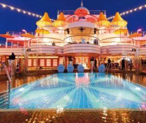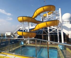 - Unterhaltung wird selbstverständlich auch den Kindern geboten, wie etwa mit spannenden Playstation-Wettbewerben, in einem Grand-Prix-Rennwagen-Simulator oder im erfrischenden Pool, der einem Wasserpark mit einem Piratenschiff ähnelt. An Bord stehen für die Passagiere auch eine Vielzahl an Fitnessmöglichkeiten zur Auswahl: Jogging-Parcours, Mehrzwecksportplatz, Sauna, Whirlpools, Solarium und Swimmingpools.
