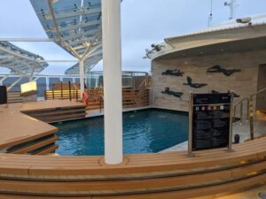 - Die großzügig angelegte Promenade lockt mit ihren Boutiquen und abwechslungsreichen Restaurants. Sie ist das Zentrum des Schiffs und bietet tagsüber ruhige Orte zum Entspannen und Genießen. Am Abend hingegen verwandelt sie sich zum Mittelpunkt des vielfältigen Musik- und Entertainment-Angebots. Ein weiterer beliebter Aufenthaltsbereich ist der großzügige Atmosphere Pool auf dem obersten Deck. Sonnenanbeter können hier tagsüber wohlverdient ausspannen und nach dem Sonnenuntergang den Sternenhimmel oder das gebotene Entertainment-Programm auf dem großen Bildschirm genießen.