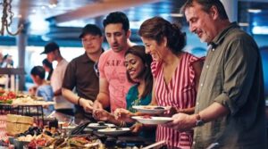 - Die Einrichtungen und Annehmlichkeiten des Schiffes sind die folgenden: drei Restaurants, zwei Cafés, drei Bars (eine davon mit Live-Musik), ein Kasino, ein Nachtclub mit Live-Musik, ein Kino, mehrere Bordshops und ein Club für Kinder ab 4 Jahren. Alle Kabinen sind mit Bettwäsche und Handtüchern, Badezimmer mit Dusche und WC, Fernseher und Kleiderschrank ausgestattet. Es gibt einen Kabinenservice, der auf Wunsch auch das Frühstück in die Kabine bringt. Passagiere der noch exklusiveren sogenannten Commodore de Luxe Class kommen in den Genuss weiterer Privilegien in der Commodore Class Lounge: kostenlose Warm- und Kaltgetränke, gute Auswahl an Snacks, Wein und Bier, kontinentales Frühstück, Auswahl an Zeitungen und Magazinen, Arbeitsbereich mit Anschlüssen für den Computer, verschiedene Fernsehnachrichtenkanäle und Zugang via Schlüsselkarte. Bezüglich des Essens haben die Gäste die Wahl zwischen einem Buffetrestaurant, einem à la carte-Restaurant und einem Steakhouse.