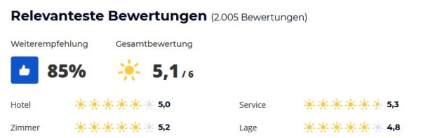 5.1 von 6 Sonnen erhalten und eine Weiterempfehlungsrate von 85%.