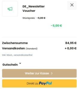 Um auf den Preis zu kommen, abonniert einfach den Newsletter um einen 5€ Gutschein zu erhalten, oder wer will, der kann meinen benutzen: DESIDHBF