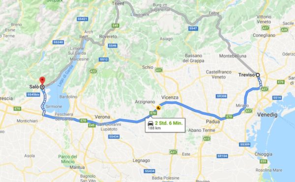 Die Anreise ist mit einem eigenen PKW gedacht. Von Süddeutschland aus ist Norditalien ja auch relativ gut zu erreichen. Wer aus dem Norden Deutschlands kommt, kann natürlich auch überlegen einen längeren Roadtrip zu machen, indem man noch einige Ziele in Deutschland anfährt oder auf Flug + Mietwagen zurück zu greifen.