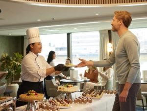 - Das Restaurant lockt bereits früh am Morgen mit frischem Kaffee- und Brötchenduft zu einem reichhaltigen Frühstücksbuffet und verwöhnt natürlich auch zum Mittag- sowie Abendessen mit kulinarischen Köstlichkeiten