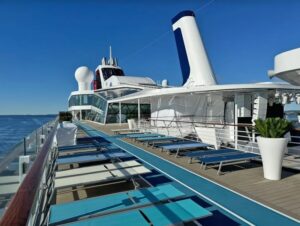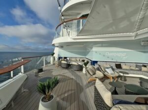 - Besondere Momente ermöglicht zudem der exklusive Champagner Treff auf Deck 6. Egal ob es einen Grund zum Anstoßen gibt oder ob es der besondere Genuss an einem Glas Champagner ausmacht: Der Treff bietet den Gästen die perfekte Atmosphäre zum Wohlfühlen und für angenehme Gespräche.