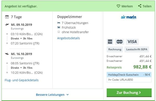 Die griechische Vulkaninsel mit ihren typischen weißen Häusern mit blauen Dachkuppeln liegt derzeit ja ziemlich im Trend. Daher kommt der Deal für den einen oder anderen vielleicht ganz gelegen? ?