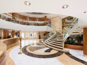 - Zur klassischen Ausstattung des Schiffs gehört neben dem Spa und dem Poolbereich auch ein Sportzentrum mit Minigolf-Parcours und Shuffleboard. Außerdem sind ein Kartenspielzimmer, ein Internetcafé und eine Bibliothek vorhanden. Der Gästeservice sowie das Landausflugsbüro befinden sich an der Rezeption, in deren Nähe sich auch die Shopping-Arkade befindet.