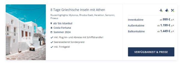 Auszeit nötig? Bei Seereisedienst bekommt ihr eine 8 Tage Kreuzfahrt Griechische Inseln mit Athen ab Istanbul inkl. Flug & Trinkgeld ab 999€ p.P. (Vergleichspreis ~1.209€) Ersparnis ~210€