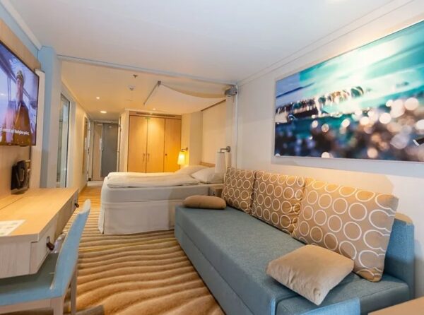- An Bord von AIDAnova bieten 2.500 Kabinen Platz für ca. 5.000 Passagiere. Gäste haben die Wahl zwischen 20 verschiedenen Kabinenkategorien. Alle Kabinen verfügen dabei über ein Bad mit Dusche/WC, Handtücher, Fön, Safe, Sat-TV und ein Telefon. Ob Familien- oder Doppelkabinen, neue speziell designte Singlekabinen, Premium-, Junior oder Penthouse-Suiten – hier findet jeder sein persönliches Zuhause auf Zeit.