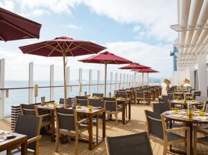 - Auch das Activity-Deck bietet dank seiner Überdachung die Möglichkeit, jederzeit Sport und Spaß zu erleben. Genannt 4 Elements und nach diesen gestaltet, finden sich ein Klettergarten, zwei Wasserrutschen, ein Sportdeck und auch eine LED-Wand zum Public Viewing in diesem Bereich. Im Einklang mit der Natur werden die Gäste zukünftig im Organic Spa verwöhnt. Ausschließlich mit natürlichen Materialien und ökologischen Produkten ausgestattet, bleiben hier keine Wünsche offen. Die großzügige Saunalandschaft mit Meerblick lädt zum Träumen ein. Entspannen kann man sich in den Innen- oder Außenpools und der Ruhebereich bietet eine exzellente Möglichkeit, um dem stressigen Alltag zu entkommen. Insgesamt umfasst der Spabereich 3.100 m².