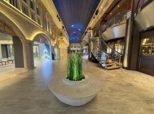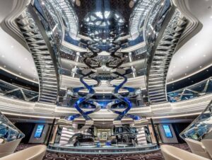 - Die Innenpromenade Galleria Euribia gehört zu den Highlights an Bord. Die Promenade wird von einem LED-Himmel geziert, welcher mit wechselnden Animationen von Sonnenaufgängen, -untergängen und vom Sternenhimmel die Blicke auf sich zieht. Zu finden sind dort Restaurants, Cafés, Bars und Boutiquen. Gäste, die gerne entspannen wollen, sind im MSC Aurea Spa gut aufgehoben. Hier erwartet die Passagiere ein Thermalbereich mit Sauna, Dampfbad, Whirlpool und weitere Angebote, die der Seele etwas Gutes tun. Für Abwechslung und Spaß sorgen zwei weitere Highlights: Der „Coral Reef Aquapark“ mit Wasserrutschen für Klein und Groß und herrlichen Wasserlandschaften sowie die aufregenden Live-Shows und Quizveranstaltungen von Guinness World Records, bei denen Kreuzfahrtgäste versuchen können, für einen Eintrag ins Guinness-Buch Rekorde zu brechen. Einen Besuch wert sind auch die sieben verschiedenen Shows des Delphi Theaters. Egal ob musikalisch, akrobatisch oder mit moderner Technik unterstützt, bei der Auswahl des Liveprogramms wurde an die unterschiedlichen Vorlieben der Gäste gedacht. Wer das musikalische Erlebnis außerhalb des Delphi Theaters fortsetzen möchte, kann das bei einem Besuch in der Carousel-Lounge tun. Hier spielt im Abendprogramm beispielsweise die „Big band at Sea“, die mit ihren 19 Mitgliedern und wechselnden Gastkünstlern Werke verschiedener Musikstile aufführt.
