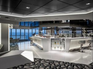 - Die große Auswahl an hervorragenden Restaurants und Bars bietet den Gästen eine kulinarische Vielfalt an Bord. Insgesamt gibt es zehn Restaurants auf dem Kreuzfahrtschiff, von welchen fünf Spezialrestaurants sind, während die andere Hälfte aus den Hauptrestaurants des Schiffes besteht. Für jeden Geschmack ist etwas zu finden. Im „Le Grill“ können französische Spezialitäten genossen werden, wobei ein Fokus des Restaurants auf Menüs zum Teilen liegt. Auch verschiedene japanische Speisen werden angeboten. Ein Besuch des Teppanyaki-Grills und der angrenzenden Sushibar lohnt sich ebenso wie ein Besuch des Robatayaki-Grills mit seinen unterschiedlich schnell zubereiteten Zutaten. Wer neben den Hauptmahlzeiten leckere Getränke und Snacks mit Gourmetqualität genießen möchte, kann dies beispielsweise tagsüber in der Carousel-Lounge tun. Insgesamt gibt es 21 Bars und Lounges auf der MSC Euribia. Ein besonderes Highlight stellt die „Helios Wine Bar“ da. Hier können 96 verschiedene Weinsorten gekostet werden, während, dank digitaler Untersetzer und einer Touchscreen-Oberfläche der Tische, Informationen zu Herkunft und Rebsorte der Weine abgerufen werden können.