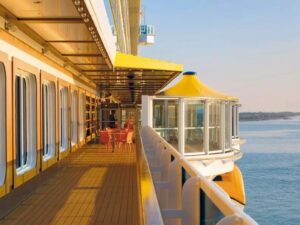 - Für Unterhaltung auf See ist ebenfalls gesorgt. Im 6.200 m² großen, über vier Decks reichenden Samsara-Spa-Bereich können Gäste die Seele baumeln lassen. Verschiedene Gesichts- und Körperbehandlungen, das Thermal- und das Türkische Bad oder die finnische Sauna versprechen erholsame Stunden. Hier lässt sich der Alltagsstress schnell vergessen. Eine Erfrischung ermöglichen die drei Swimming- und acht Whirlpools. Im Samsara-Spa ist ebenfalls ein Fitnessbereich integriert mit Geräten zum Trainieren sowie einer Joggingstrecke auf dem obersten Deck an der frischen Luft. Dort gibt es außerdem einen Sportplatz, auf dem sich Sportbegeisterte bei Teamsportarten auspowern können.