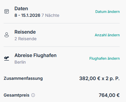 Die Reisezeit bezieht sich hier auf den Januar 2026, andere Termine können ebenfalls gewählt werden.