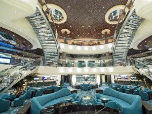 - Tagsüber können die Passagiere der MSC Preziosa die Sonne genießen oder in einem der vier Swimming Pools, zu denen auch ein Infinity Pool gehört, planschen. Außerdem sind an Bord zwölf Whirlpools sowie der Doremi Castle Aqua Park für Kinder und die beeindruckende, 120 Meter lange Wasserrutsche Vertigo vorhanden. Wer sich sportlich betätigen möchte, hat eine große Auswahl zwischen Fitness Center und Sportplatz oder der Nutzung der schiffseigenen Bowlingbahn. An Bord gibt es zudem auch den Aurea Spa Bereich mit einem großen Angebot an Massagen und weiteren Schönheitsbehandlungen, der zum Relaxen einlädt. Für die Abendunterhaltung stehen 21 Bars, eine Disco, ein Theater mit spektakulären Shows sowie ein Kasino zur Verfügung.