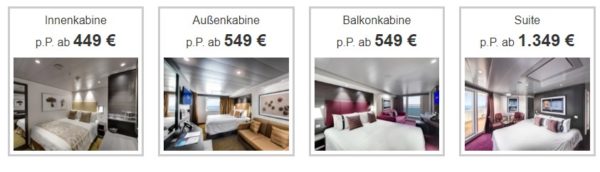 Pro Person bereits ab 549 € für die Balkonkabine.