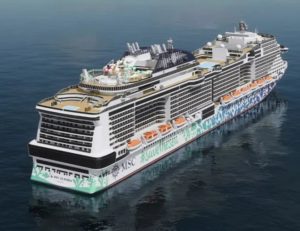 - Benannt nach der gleichnamigen griechischen Meeresgöttin, zählt die MSC Euribia zur populären Meraviglia Plus Schiffsklasse von MSC Kreuzfahrten. Als erstes Schiff der MSC Flotte hebt sich das Schiff aufgrund seiner Rumpfbemalung optisch von anderen Schiffen der Flotte ab. Mit dem Motto #SaveTheSea wird ein Zeichen zum Schutz der Meere gesetzt. Hierbei soll nicht nur ein Ausschnitt des Ökosystems dargestellt sondern auch die Umweltfreundlichkeit hervorgehoben werden. Mit einer Länge von 331 Metern gehört die Schiffsneuheit zu den Meeresgiganten der Ozeane und bietet Platz für maximal 6.327 Gäste. Bei insgesamt 2.419 Kabinen an Bord ist die Vielfalt der Kabinenkategorien groß, beginnend bei Single-Kabinen bis hin zu Maisonette-Suiten mit eigenem Whirlpool