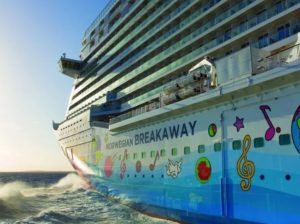 - Seit April 2013 kreuzt das Flaggschiff der Breakaway Klasse von Norwegian Cruise Line auf See: Die Norwegian Breakaway. Der Ozeanriese bietet Platz für 3.963 Passagiere, die an Bord die vielfältigen Freizeitmöglichkeiten genießen können. Denn die Norwegian Breakaway vereint das Beste der vorherigen Schiffe von Norwegian Cruise Line gepaart mit einem modernen Design und zeitgemäßen Ambiente. Das Schiff ist in seiner Ausstattung und Gestaltung ganz an einen seiner Heimathafen New York angelehnt. So ist das Motiv New York weithin am Rumpf des Schiffes in Form der Skyline erkennbar, designt vom bekannten Pop Art Künstler Peter Max.