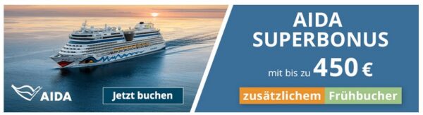 AIDA: Frühbucher-Superbonus bis zu 450€ Frühbucher-Rabatt sichern