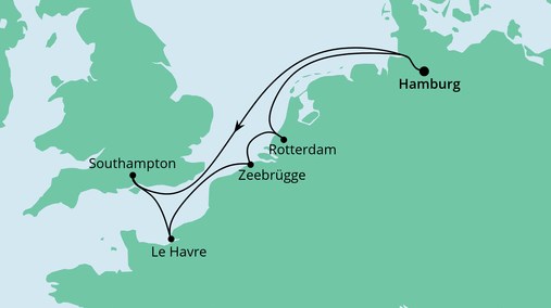 - Metropolen ab Hamburg, nach Rotterdam, Le Havre, Southampton verschiedene Termine verfügbar bereits ab 549€