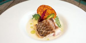 - aktuell finden sich auf der Speisekarte etwa: Poularde mit Kokosmilch und Lotuswurzel oder Seeteufel mit Perlgraupen und Zitrone