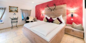 - Sie schlafen in einem der neun Design-Zimmer des Hauses; Naturstein und viel Holz prägen die individuell gestalteten Räume