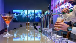 - Darüber hinaus genießt du in der Leo-Lounge des Hotels klangvolle Musik in einer clubähnlichen Atmosphäre und an der Leo-Bar einen schmackhaften Cocktail – lass es dir schmecken!
