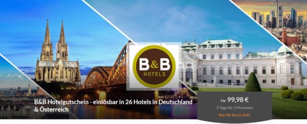 B&B Hotelgutschein (2 Übernachtungen für 2 Personen inkl. Frühstück) einlösbar in 26 Hotels in Deutschland & Österreich für 99,98€ – z.B. München, Wien, Graz, Köln