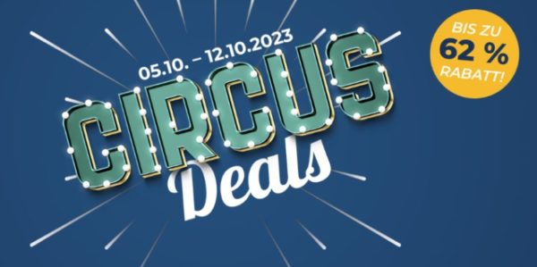 Es ist wieder soweit… Donnerstag, Zeit für die Circus Deals – 12 Deals zum Knallerpreis! 💥 Nur bis zum 12.10.23 gültig.