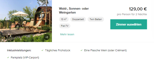 - ab 2 Übernachtungen im Wald-, Sonnen- oder Weingarten
