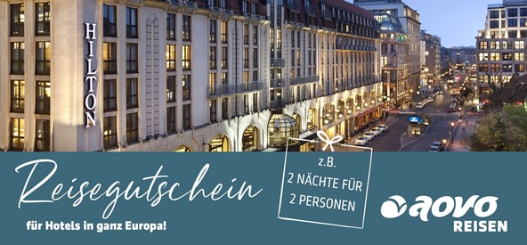 Verschenkt einfach einen Gutschein für einen unvergesslichen Aufenthalt in einem luxuriösen Hilton Hotel für zwei Personen – verfügbar in zwei Preisstufen:
