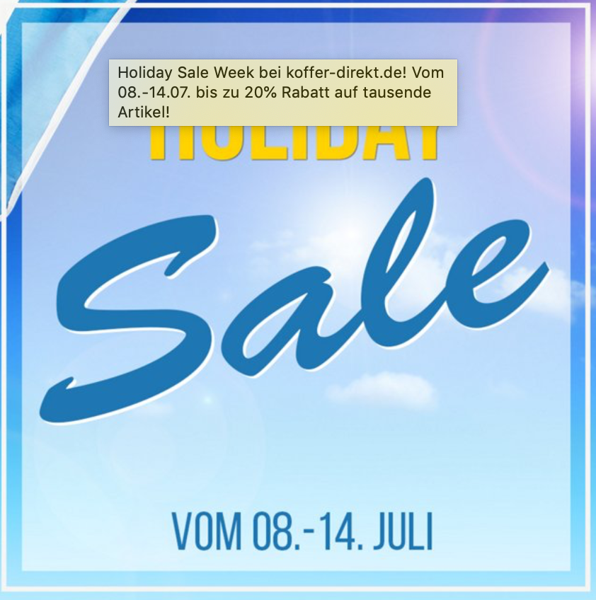 Bei Koffer-Direkt findet an diese Woche der Summer-Sale statt, bei dem es 20% Rabatt auf ausgewählte Koffer gibt.