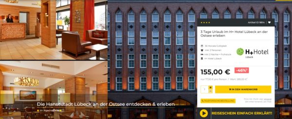 holybabel 10.11.2022, 14:00 #Der Deal Link funktioniert leider nicht. Ich denke das ist der richtige: https://www.reiseschein.de/staedtereisen-deutschland/hotelgutschein-luebeck/3-tage-urlaub-im-h-hotel-luebeck-an-der-ostsee-erleben_9814_11528