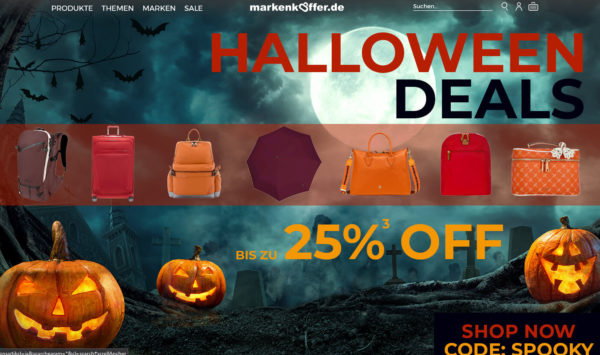 Bei Markenkoffer.de gibt es einen Halloween Sale mit bis zu 25% Rabatt + ihr könnt dank dem aktiven Sale nochmal 5% sparen.