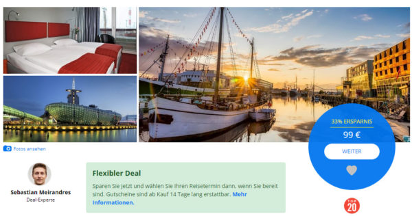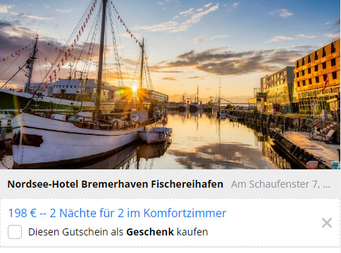 Denn über Travelzoo landet man im Nordsee Hotel Bremerhaven Fischereihafen (3 Tage, 4*-Hotel) für 99€/p. P.