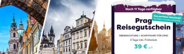 Noch kein passendes Weihnachtsgeschenk? Wie wäre es dann mit einem Trip nach Prag? Bei watado bekommt ihr gerade einen Gutschein für 2x ÜF + Hotel nach Wahl inkl. Schifffahrt für 39€ p.P.