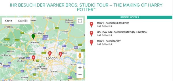 - 1 Ticket p.P.* für die Warner Bros. Studio Tour – The Making of Harry Potter