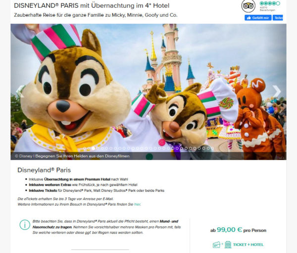 Bei Travelcircus erhaltet ihr gerade einen Trip ins „Disneyland Paris“ Reisegtuschein für 2 Personen (Hotel inkl. Tickets) ab 99€ pro Person.