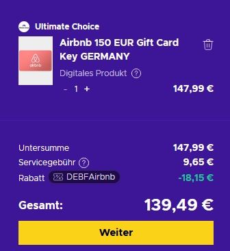 *TOP* 150€ Airbnb Geschenkkarte für 138,49€