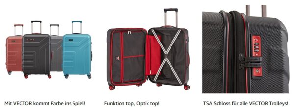 - AUSSTATTUNG: Mit vier großen, modischen und laufruhigen Doppelrollen, dem integrierten TSA Schloss und dem höhenverstellbaren Teleskopgestänge, ist der Handgepäckkoffer VECTOR der ideale Begleiter