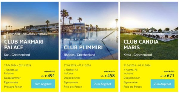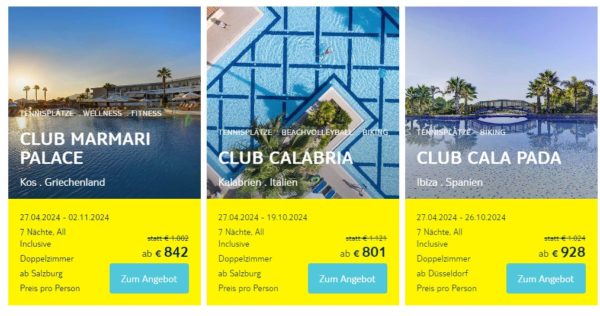 - Limitiertes Angebot in ausgewählten Reisezeiträumen und Clubs