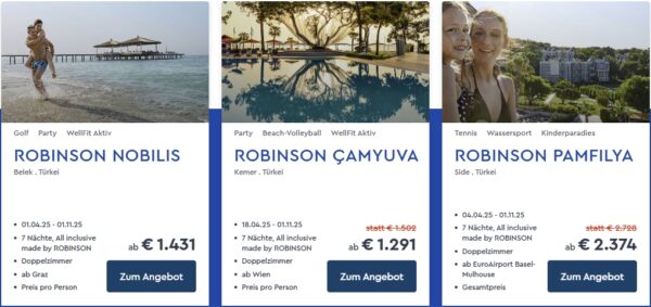 - Bis zu 20% Frühbucher-Rabatt bei TUI & Robinson