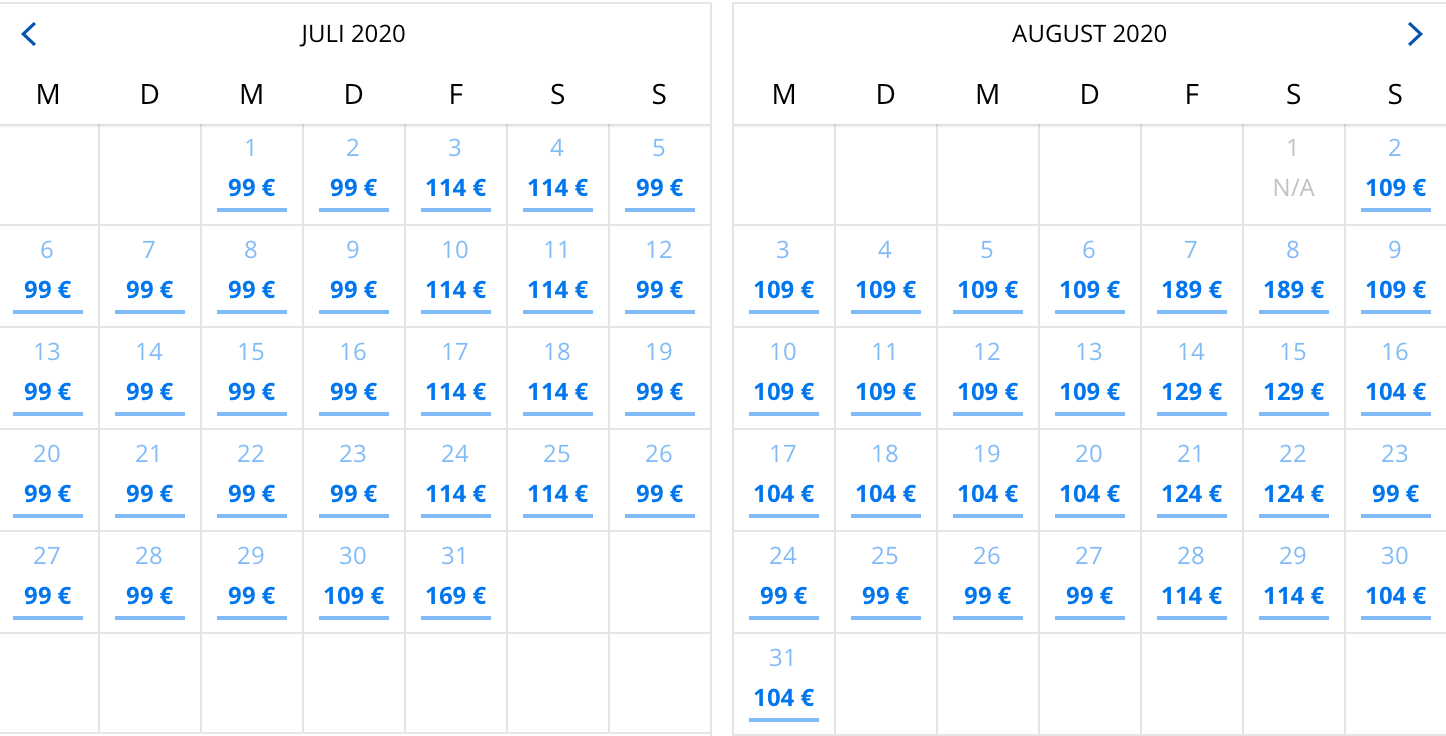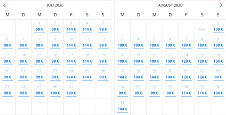 Matthi 10.03.2020, 21:51 #Gerade mal geschaut: Im Kalender sind zu diesem Preis bis einschließlich August Angebote ab 99€ verfügbar.