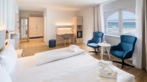 - Ruhige Strände, frische Seeluft und entspannte Insel-Mentalität: Das sind die perfekten Zutaten für einen unvergleichlichen Nordsee-Urlaub. Sobald du die Hoteltür öffnest, landest du direkt am Hauptstrand von Wangerooge. Hier ist die Küste mit weißem Sand übersät und lädt zu herrlichen Spaziergängen ein. An rauen Tagen lässt sich die wilde Nordsee aus dem Hotelrestaurant beobachten.