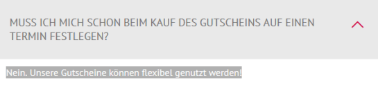 - Der Beschenkte kann den Termin der Einlösung frei wählen
