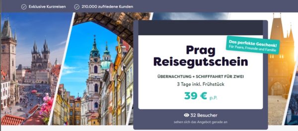 Wie wäre es mal einen Kurztrip zu verschenken? Neben dem Freizeitpark-Gutschein gibt es bei Watado nun auch einen Reisegutschein für 2 ÜN, 2 Personen inkl. Frühstück in Prag für 39€/Person.
