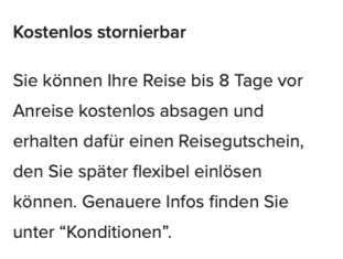 Matthi 01.03.2022, 20:44 #Kostenlos stornierbar bedeutet offensichtlich nicht, dass das Geld / der Reisepreis erstattet wird:
