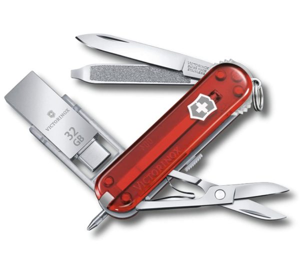- Taschenmesser mit 8 Funktionen: USB Stick 32 GB, Pinzette, Druckkugelschreiber, kleine Klinge, Schere, Nagelfeile, Schraubendreher 2.5 MM, Ring
